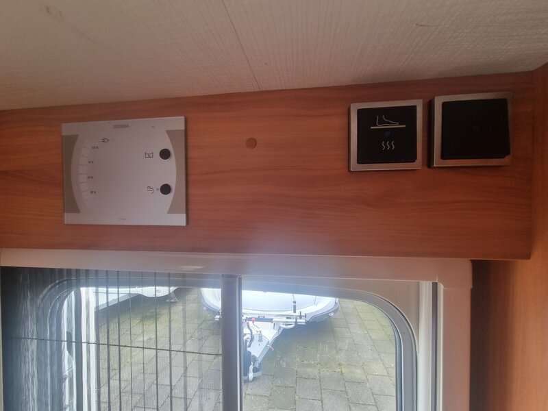 Doordat er een handige en overzichtelijk bedienings display in de caravan is gebouwd, kunt u heel snel uw waterpeil controleren in percentages of de waterpomp uit of aan zetten, verder geeft deze display ook aan of u zich aan de walstroom bevindt op de camping.