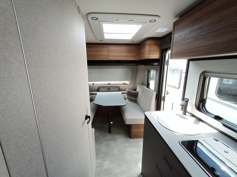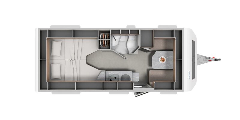 Deze moderne caravan blinkt uit in zijn design en mogelijkheden. Op en top om lekker met vakantie te gaan. De caravan beschikt over een royale ruime indeling. Voorzien van een comfortabel zithoek voor de ontspanning, practische keuken om lekkere maaltijden klaar te maken, heerlijk V-bed voor een goede nachtrust en toiletruimte. Dit alles voorzien van een strakke vormgeving en tijdloze moderne kleurstelling. Met zijn ruime opbergmogelijkheden is dit de ideale caravan om op mee pad mee te gaan.