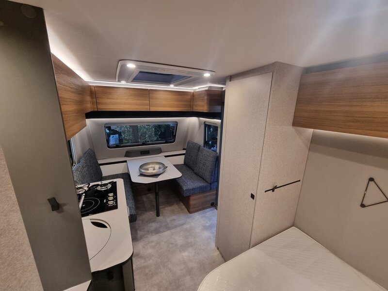 De Novaline 465 heeft een ruime comfortabele zithoek, die tevens om te bouwen valt tot een eenpersoonsbed. Een practische keuken met spoelbak, tweepits gaskookplaat en lage koelkast. Verder een ruim toilet en externe spoelbak. Ook zijn er naast de hangkast voldoende ruime opbergruimten voor de spullen in op te bergen aanwezig. En voor wanneer u wilt gaan slapen na een dag actieve vakantie pret, beschikt deze caravan over een groot Frans bed, om lekker in weg te dromen.