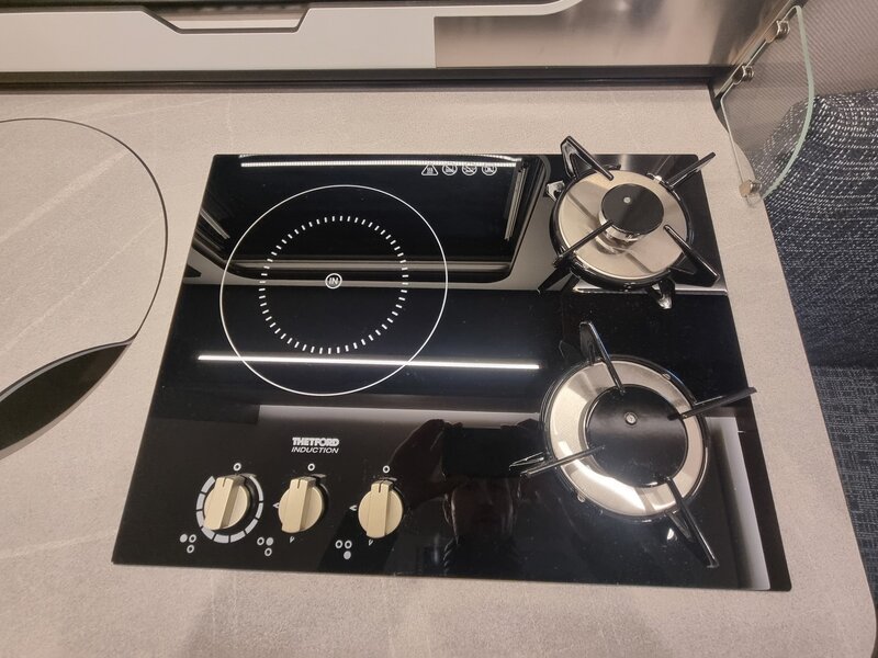 - Hybride kookplaat (twee gaspitten, één inductiekookplaat)