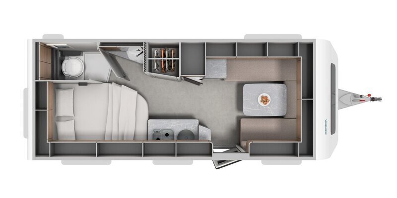 De Novaline 485 heeft een ruime heerlijke rondzit, die tevens om te bouwen valt tot een tweepersoonsbed. Een heerlijke grote keuken met spoelbak, tweepits gaskookplaat en keukenblad verbreders. Verder een ruim toilet en externe spoelbak. Ook zijn er naast de hangkast voldoende ruime opbergruimten voor de spullen in op te bergen aanwezig. En voor wanneer u wilt gaan slapen na een dag actieve vakantie pret, beschikt deze caravan over een groot Frans bed, om lekker in weg te dromen.