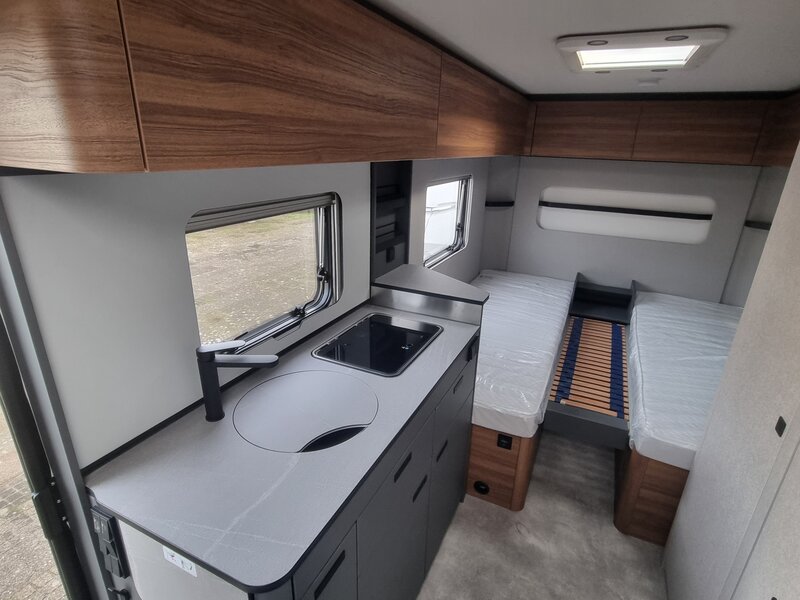 Ruimte en luxe, stap binnen en ervaar een oase van rust en ruimte. De slimme indeling biedt een royale zitruimte, een volledig uitgeruste keuken en een comfortabel slaapgedeelte waarbij ieder zijn eigen matras heeft of er gekozen kan worden voor een geheel kingsize bed door het uitschuiven van de lattenbodem in het middengedeelte. Geniet van de luxe van thuis, waar u ook bent.