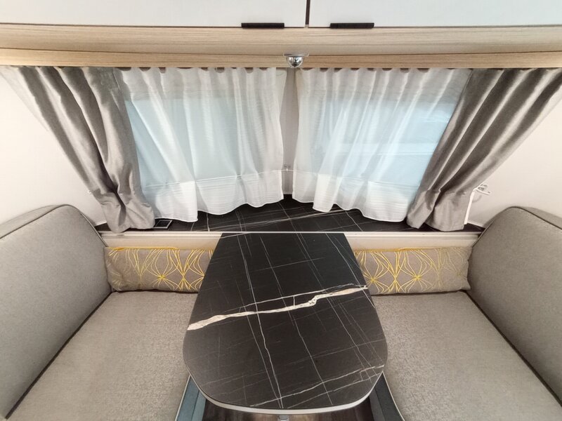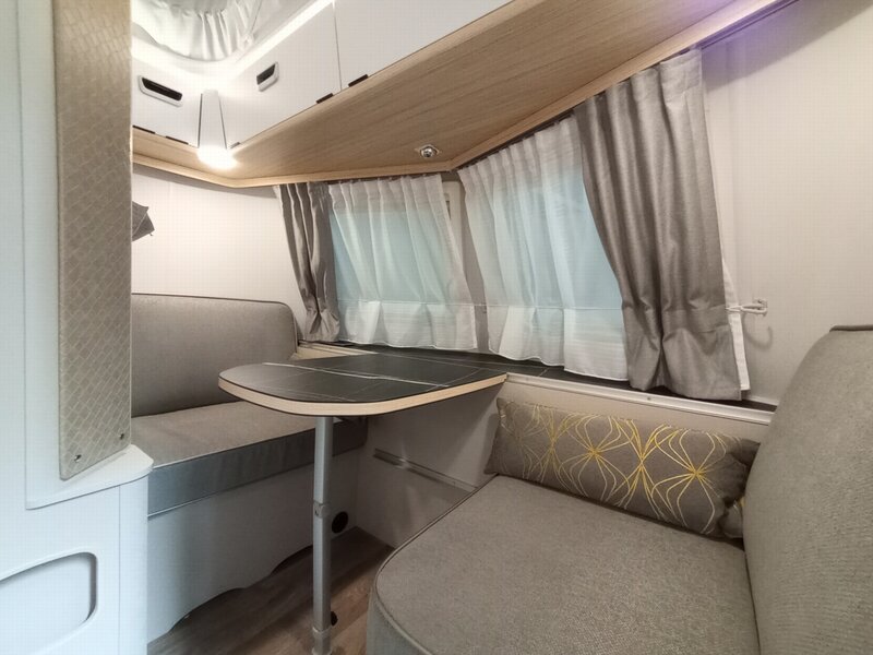 Door zijn tijdloze uitstraling en goede stroomlijn met hefdak is dit een compactere caravan die met zijn 1500 Kg asgewicht bijna door elke auto te trekken valt.