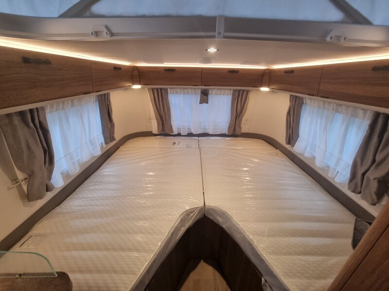 Ruimte en comfort de 642 is een van de ruimste Touring-modellen ooit. Achterin vindt u het royale V-bed, dat het gemak van twee aparte bedden combineert met de gezelligheid van een groot tweepersoonsbed (210- 200 x 205 cm).