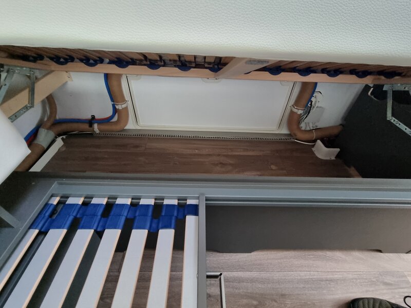 - Lattenbodem en opvulmatras tussen de één persoonsbedden