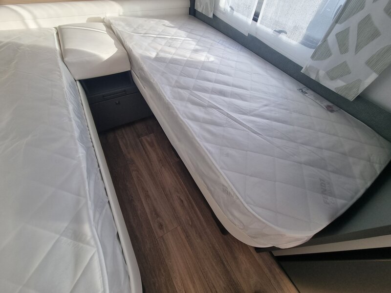- Lattenbodem en opvulmatras tussen de één persoonsbedden