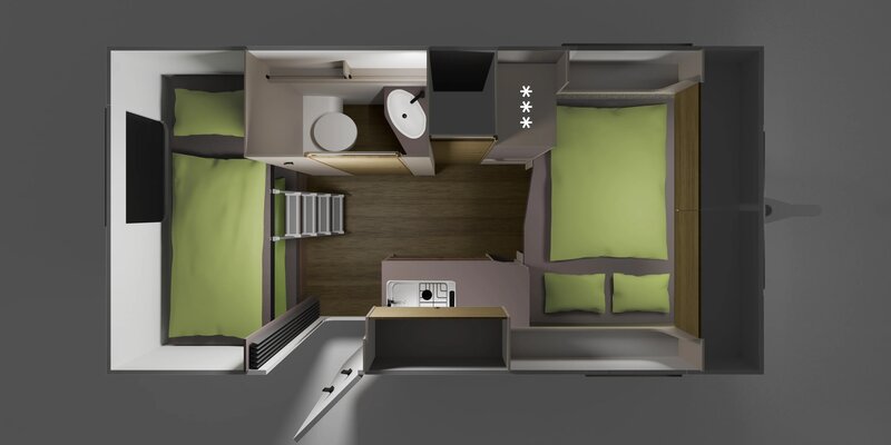 De afwerking is tot in detail verzorgd. Denk aan soft-close bovenkasten, moderne LED-verlichting en praktische extra’s zoals USB-C aansluitingen en verstelbare leeslampjes. Alles is ontworpen om jouw verblijf zo aangenaam mogelijk te maken, met oog voor gebruiksgemak én sfeer.