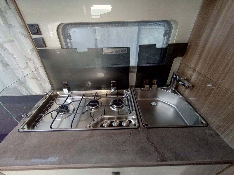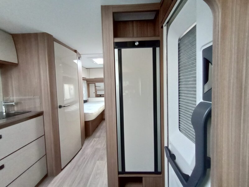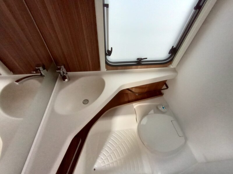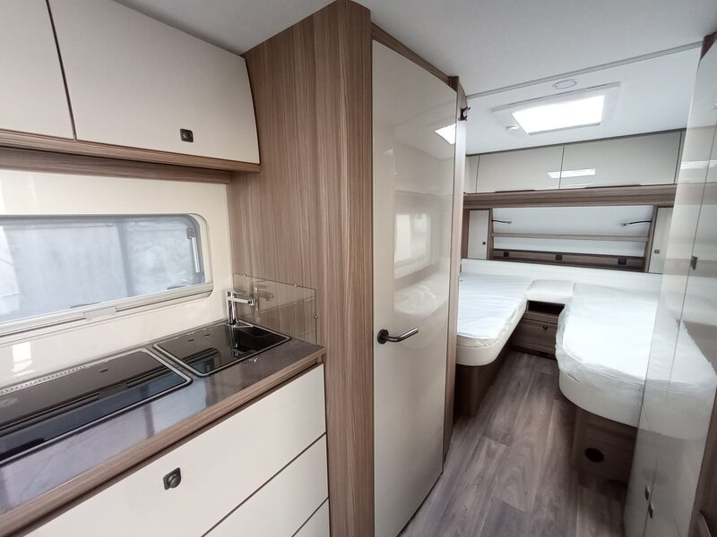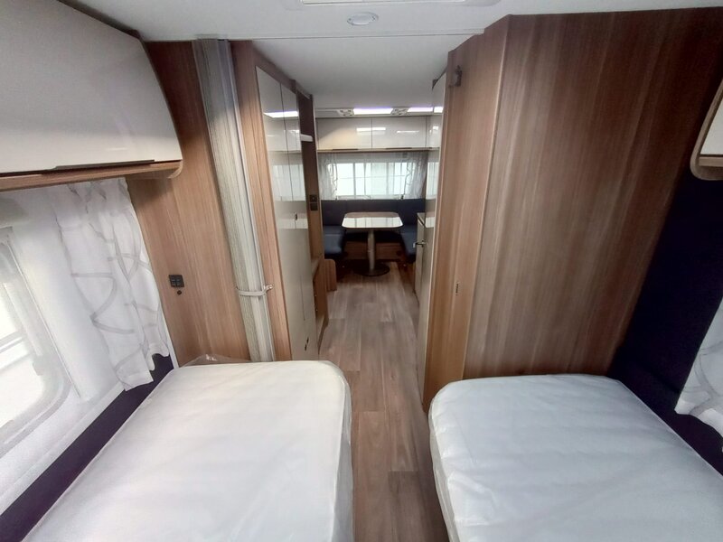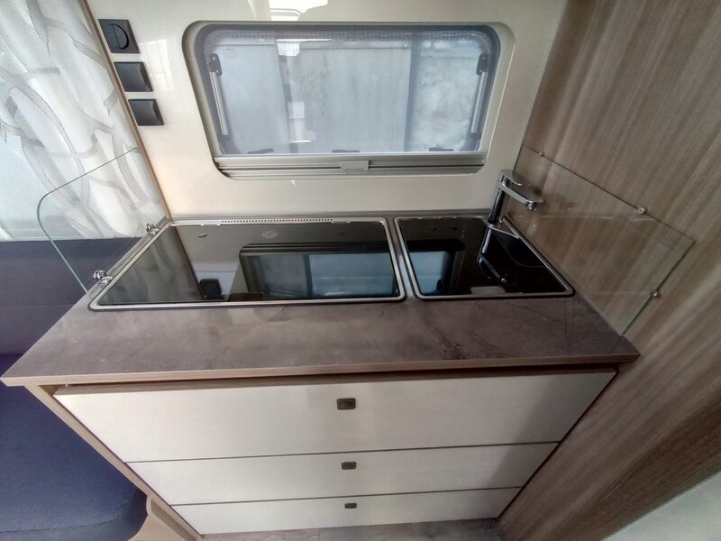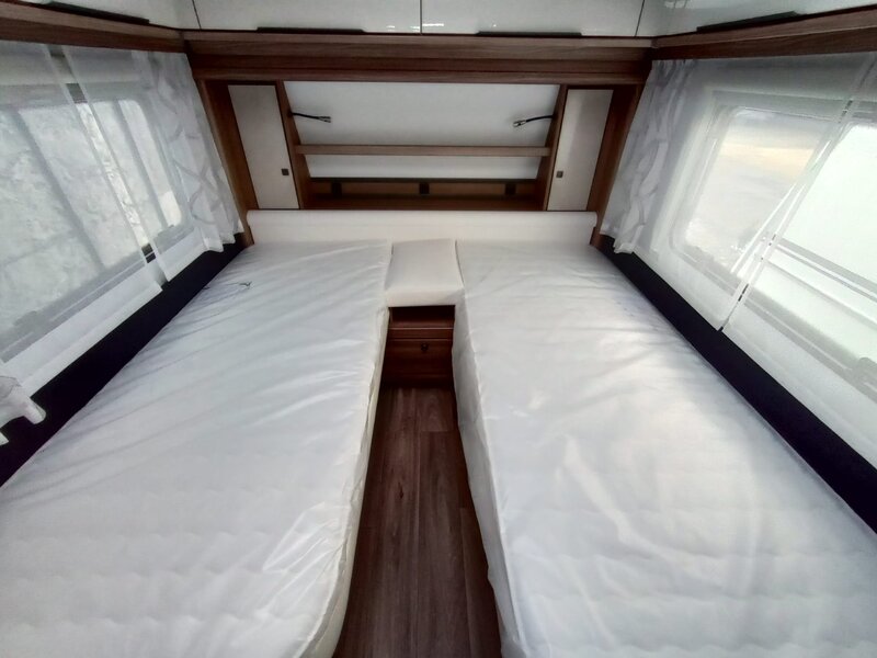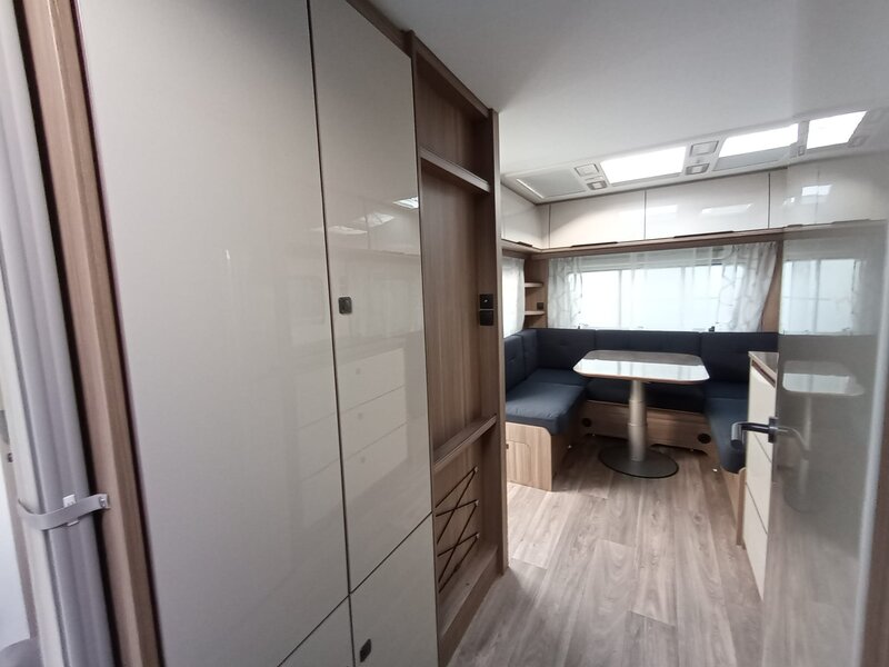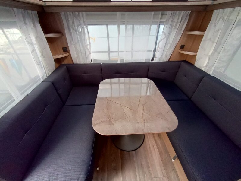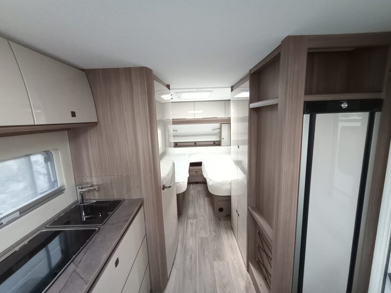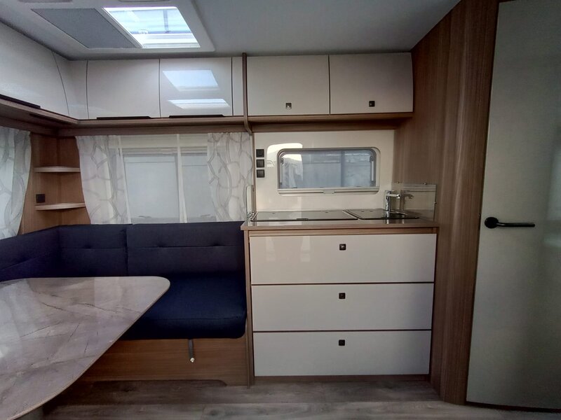 stap binnen in een wereld van rust en klasse. Het namelijk voorzien van het warme, diepe Noce Marche meubeldecor, dat prachtig contrasteert met de stijlvolle en duurzame Cania bekledingsstof. De 550 SG indeling biedt u de geliefde enkele bedden voorin. Achterin een comfortabele rondzit die om te bouwen valt tot tweepersoonsbed. Een ruim keukenblok met brede laden, een 3-pitsgascomfort en spoelbak. Tegenover de keuken naast de toegangsdeur bevindt zich een hoge koelkast. Verder is er een ruim opgezet toilet voorzien van een wastafel. De hangkast en vele grotere en kleinere opbergruimten maken deze caravan meer dan compleet.