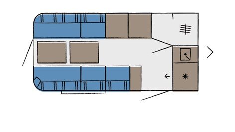 De Beachy kenmerkt zich door zijn lichte gewicht, ruimte en gebruikersgemak. Het bed kunt u laten liggen en dan blijft er toch nog een klein zitgedeelte voor 2 personen over zodat u niet direct buiten hoeft te ontbijten. In de Beachy is een Mobicool koelbox standaard in de lade onder de wasbak te vinden die al uw boodschappen koel kan houden uiteraard.