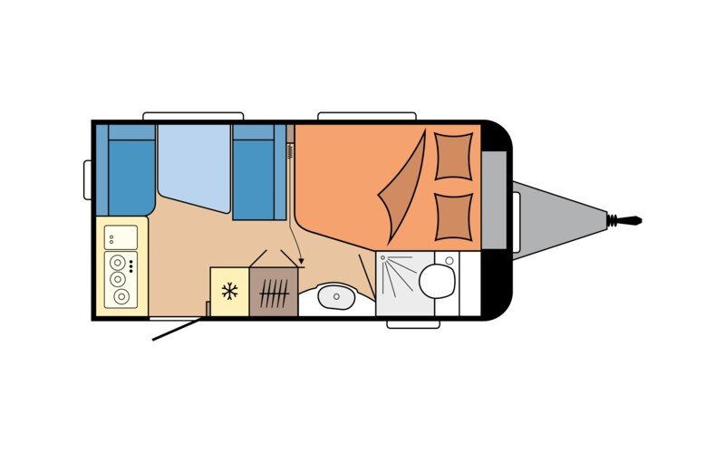 Deze Hobby De Luxe 400 SFE is dé ideale compacte caravan voor starters en stellen, met een stijlvol nieuw interieur, een comfortabel Frans bed voorin, een gezellige treinzit achterin, en een vernieuwde keuken met strakke, gladde achterwand voor een modernere look, perfect voor iedereen die met stijl en comfort op pad wil zonder onnodig gewicht. Deze caravan combineert de bewezen kwaliteit van Hobby met subtiele, maar geslaagde vernieuwingen, zoals de 'Zesto' stoffering, voor een instant vakantiegevoel. Het toilet, externe wastafel, hangkast en de vele kleinere en grote opberg mogelijkheden maken de caravan helemaal compleet de avontuurlijke vakanktie.