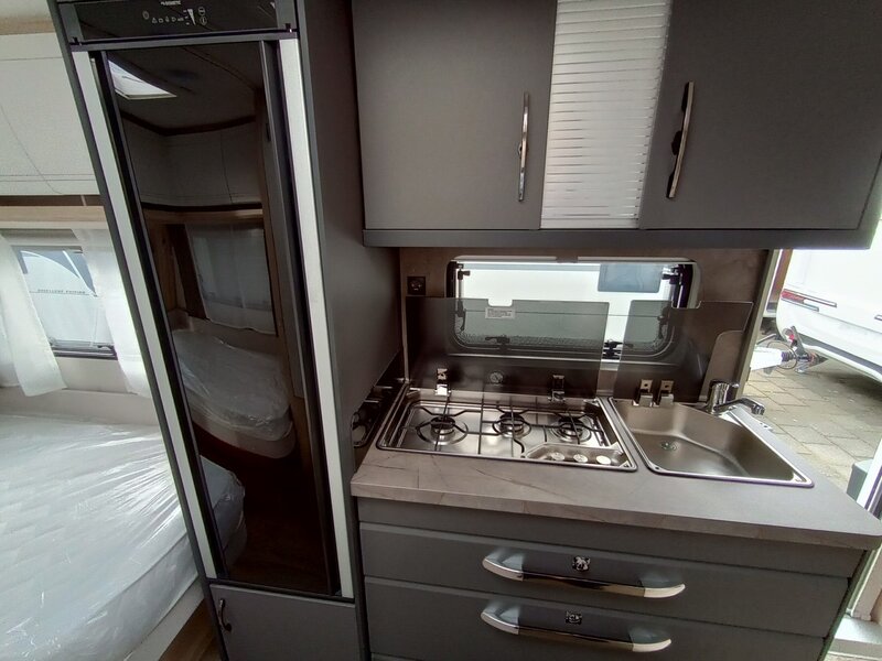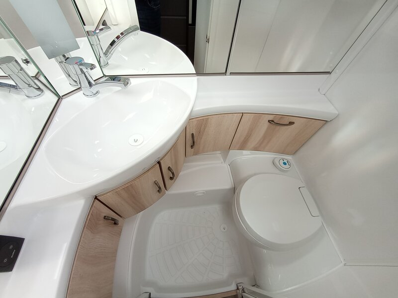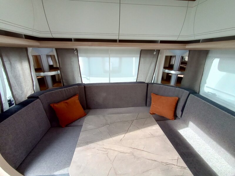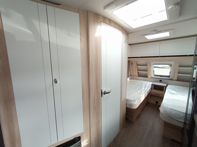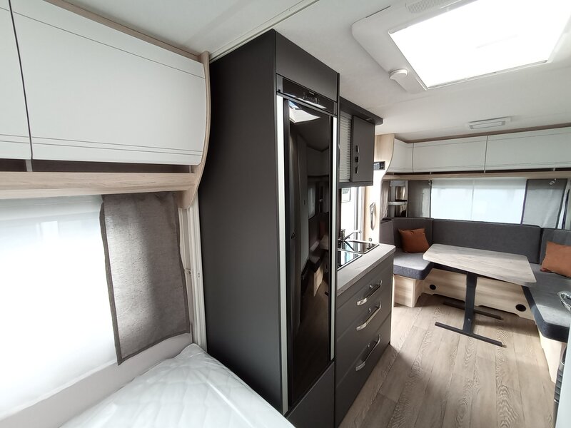 Verder heeft de caravan een lichte en ruime indeling. Dankzij de slimme indeling en de grote ramen voelt de caravan verrassend ruim en licht. Het interieur heeft een tijdloze moderne uitstraling. Verder beschikt de caravan over diverse kasten, u heeft altijd voldoende ruimte voor al uw spullen.