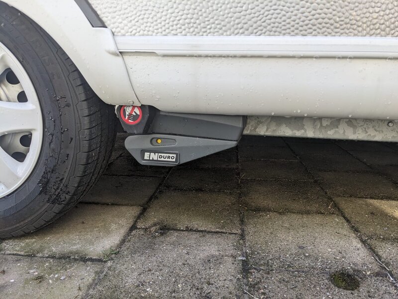 Volautomatische Enduro Mover: Manoeuvreren op de camping was nog nooit zo eenvoudig. Met één druk op de knop plaats je de caravan precies waar je hem wilt hebben. De mover wordt aangedreven door een lichte lithium-ion accu die lang meegaat en snel oplaadt.