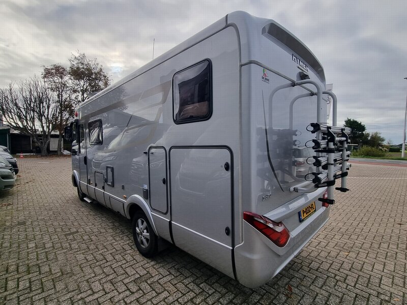 Zaken als een garage met een vrije hoogte van 123 cm waar je de fietsen echt éénvoudig in plaatst, veel opbergruimte in de dubbele vloer en vele andere vernuftige opbergruimtes zijn dingen waar HYMER echt over nagedacht heeft.