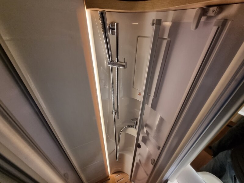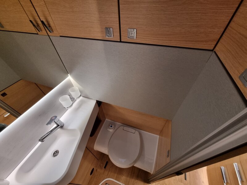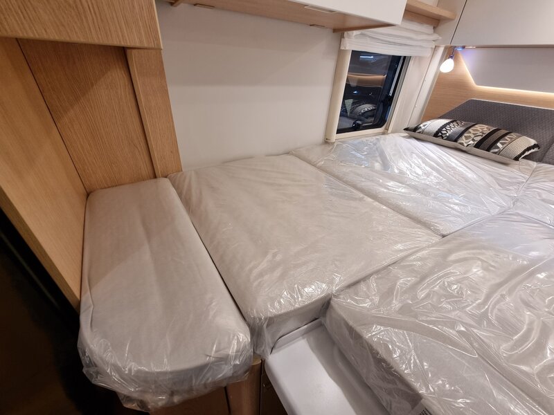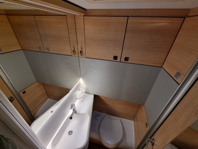 In de camper is het comfort minstens net zo hoog. Grote enkele bedden met hieronder ene grote garage, heerlijke en praktische douche-toiletruimte, prima keuken en uitstekende zitgroep. In de cabine bevindt zich nog een hefbed welke in neen handomdraai naar beneden gehaald wordt hetgeen extra slaapplaats voor 2 volwassen personen oplevert.