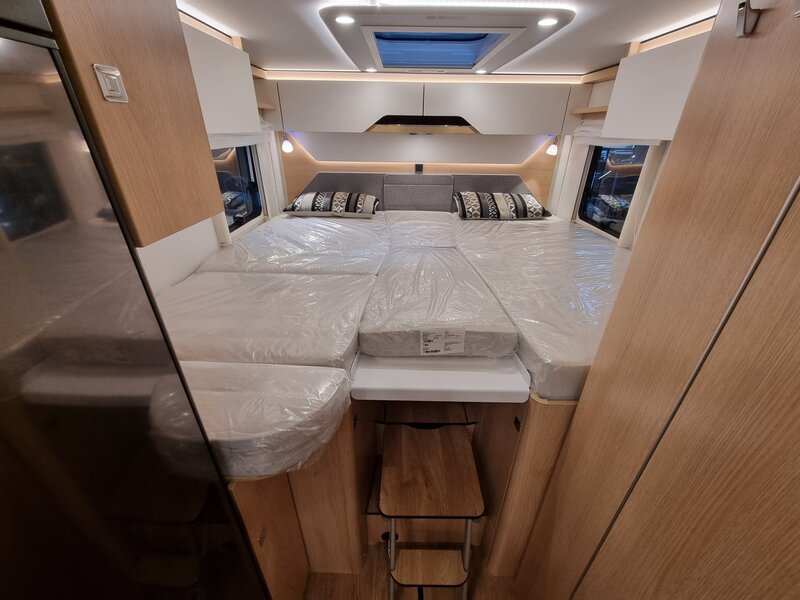 Aanwezig en snel leverbaar deze prachtige en hoogwaardige 4 persoons HYMER integraal met EXTRA LANG bed van maar liefst 215 cm lang. Dit terwijl deze luxe camper slecht 699 cm lang is.