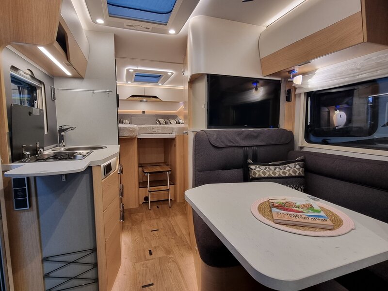 Met deze HYMER maak je de mooiste reizen zowel in de zomer als in de winter. De hoge isolatiewaarde, dubbele bodem en het HYMER afwerkingsniveau zorgen dat het 52 weken per jaar genieten is.