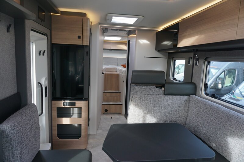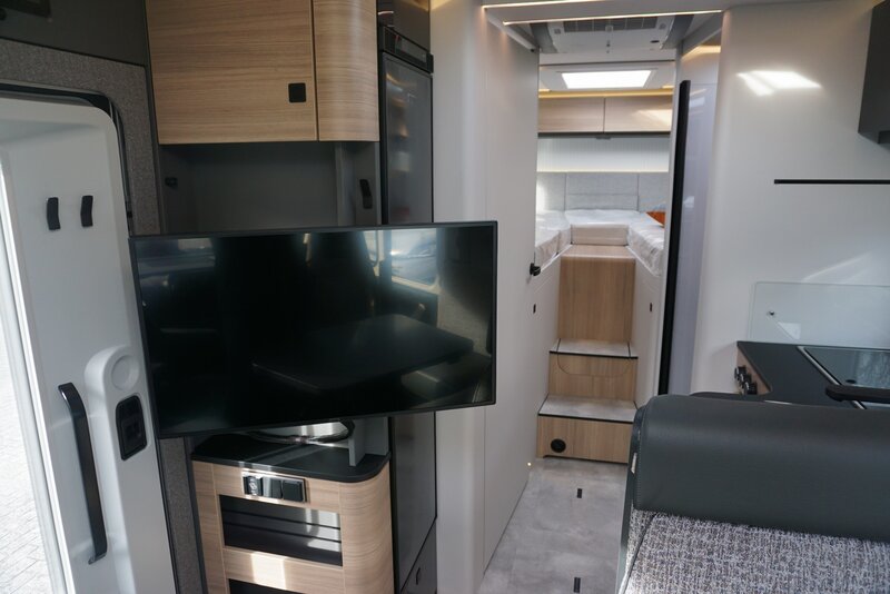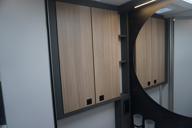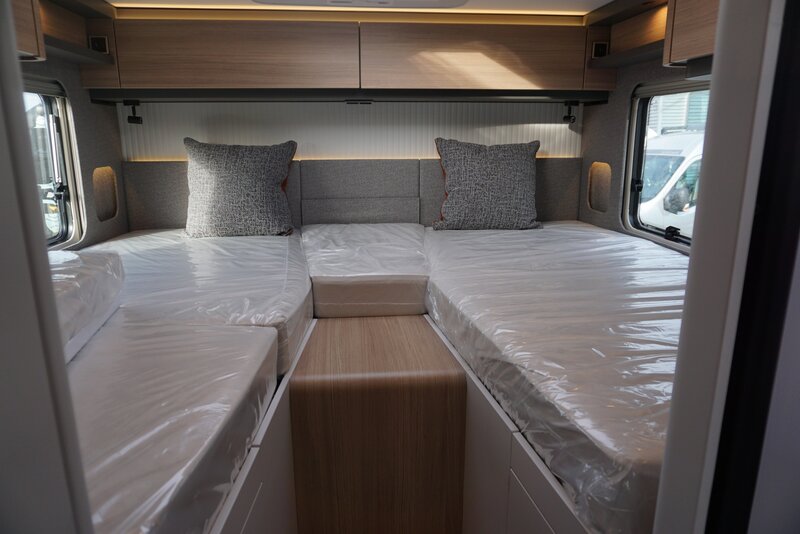 Deze BMC I 680 met enkele bedden, separate douche-toiletruimte, bovenkasten aan de voorzijde en het Goldschmitt Levelsysteem is uitgerust in Matara Teak en voorzien van vele opties en pakketten welke als volgt zijn samengesteld:
