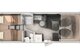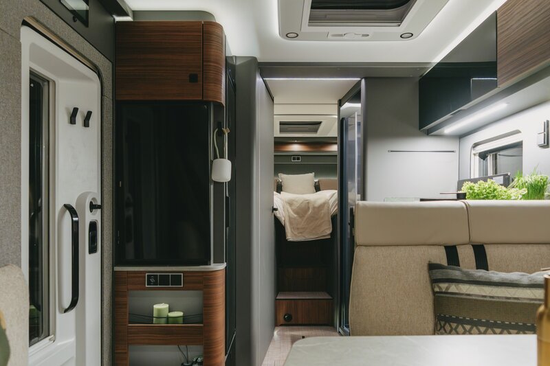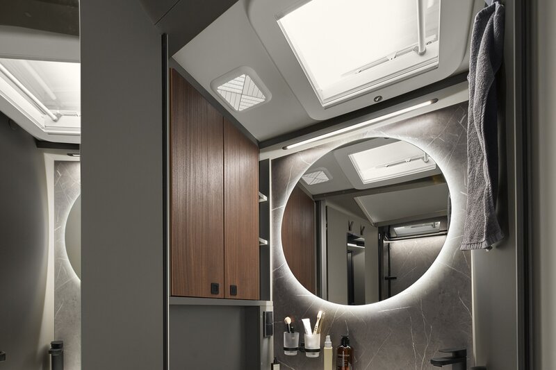 De keuken is volledig uitgerust met een driepits kooktoestel en een ruime koelkast van circa 142 tot 153 liter, waardoor ook langere reizen zonder zorgen mogelijk zijn. De slimme Vario-badkameroplossing biedt zowel een aparte douche als een afzonderlijk toiletruimte, die samen te voegen zijn tot één royale badkamer voor extra comfort en bewegingsruimte.