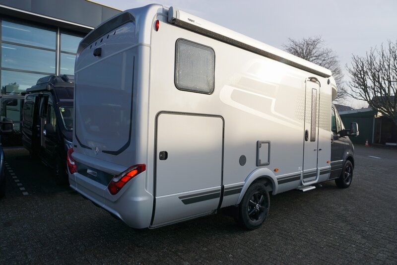 ** Afhankelijk van het gewicht van de totale bagage, opties en accessoires en de mee te reizen personen kan deze camper op F2 3.500 kg (Rijbewijs B) of maximaal 4.430 kg (Rijbewijs C of C1) geregistreerd worden. Vraag onze verkoopadviseurs naar meer info.