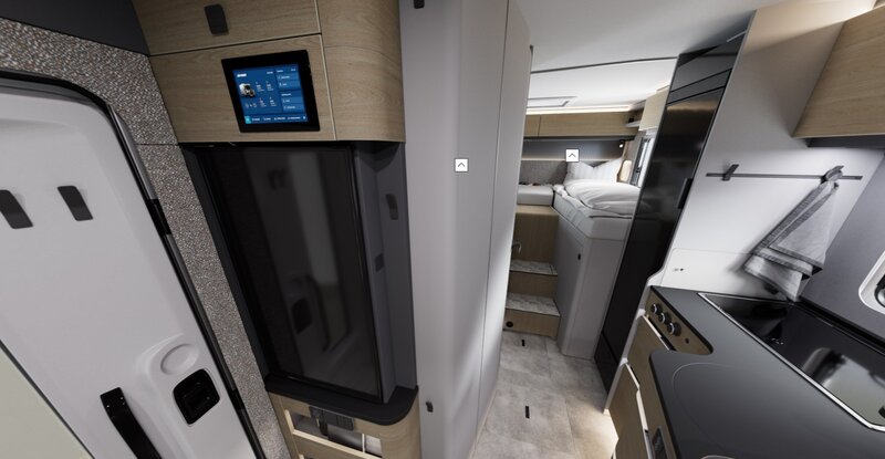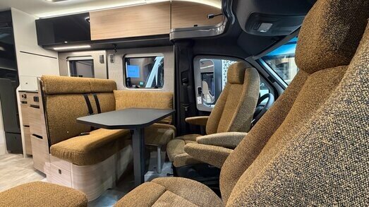 Stap binnen en u merkt direct het verschil. De nieuwe interieurafwerkingen in Matara Teak Tiberino en Rochefort Walnoot geven de camper een stijlvolle, bijna huiselijke uitstraling. In combinatie met subtiele verlichting en slimme indeling ontstaat een ruimte waarin u zich direct op uw gemak voelt — of u nu onderweg bent of op bestemming.
