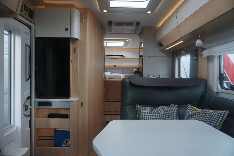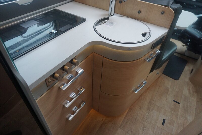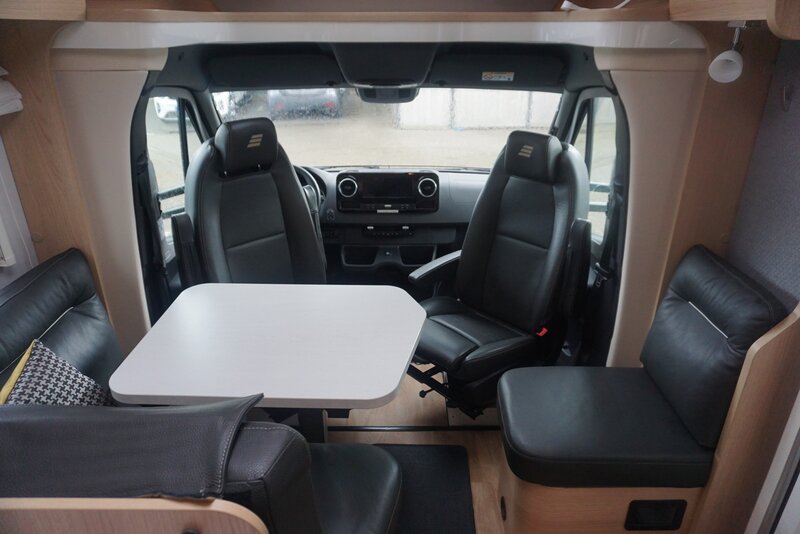 Deze camper heeft een verrassende, warme en kwalitatief hoogwaardige en gezellige indeling. Met zijn lengte van 719cm, breedte van 229cm en een royale stahoogte is er veel ruimte. De L-zitgroep met lengte/breedte verschuifbaar tafelblad en draaibare pilotenstoelen, maken de avonden tot een gezellig samenzijn, ook wanneer het “weer” wat minder is. Met de neerlaadbare tafel creëert u in een mum van tijd ook nog eens een 3e slaapplek.