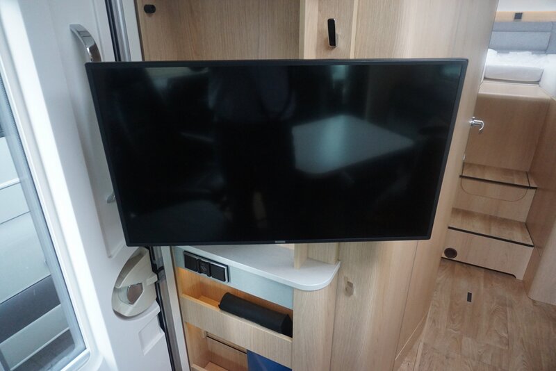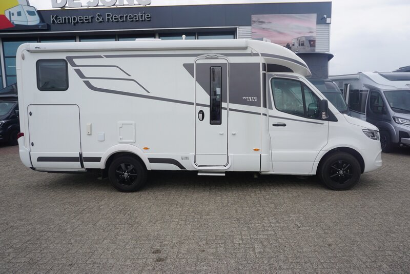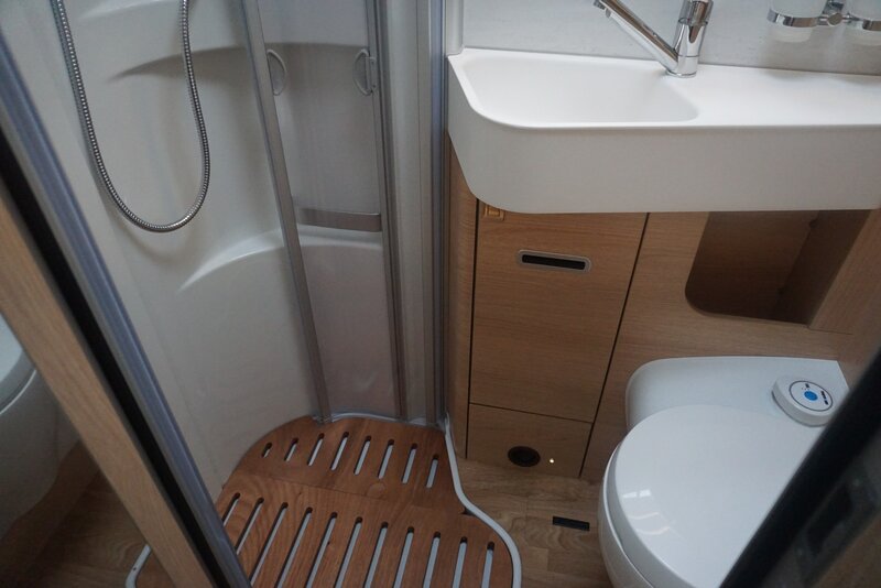 Ook aan het praktische aspect is gedacht: de midden opstelling van het sanitair biedt een ruime douche, cassettetoilet en vaste schoon- en afvalwatertanks, terwijl slimme extra’s zoals een houten douchevlonder, hordeur en verduistering zorgen voor optimaal comfort onder alle omstandigheden. Met achterin een royale garage is er bovendien plek genoeg voor al je bagage, fietsen of kampeeruitrusting en uiteraard aan beide zijden voorzien van 2 grote toegangsdeuren.