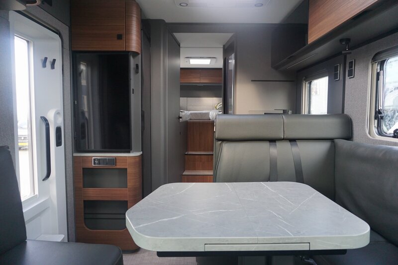 Bij ons in de showroom de NIEUWE HYMER BMC T 680 half integraal camper met enkele bedden en separate douche – toiletruimte. De perfecte rij- eigenschappen van deze HYMER op basis van de Mercedes Sprinter met Hymer Super Light Chassis en Al-Ko breedspoor torsieas zijn gelijk gebleven. Het interieur van deze TOP camper is flink vernieuwd en in een modern jasje gestoken. Met 2 interieur decors te weten Matara Teak en Rochefort Nut zet Hymer het succes van de Modern comfort klasse voort. Twee interieurstijlen die warm en modern zijn en uiteraard veel comfort bieden zullen de populariteit van de BMC I en BMC T voortzetten. Kwaliteit en gebruiksvriendelijkheid overtreffen wellicht de voorganger. De populaire indelingen 600 en 680 zetten de traditie van de Modern Comfort Line voort. Extra opties en aantrekkelijke pakketten staan garant dat ene ieder haar en zijn eigen wensen invult. Betrouwbaarheid, comfort en kwaliteit zorgen voor de mooiste reizen. Nu al zin in zo een geweldige reis kom naar onze showroom en/of maak een afspraak met onze verkoopadviseurs.