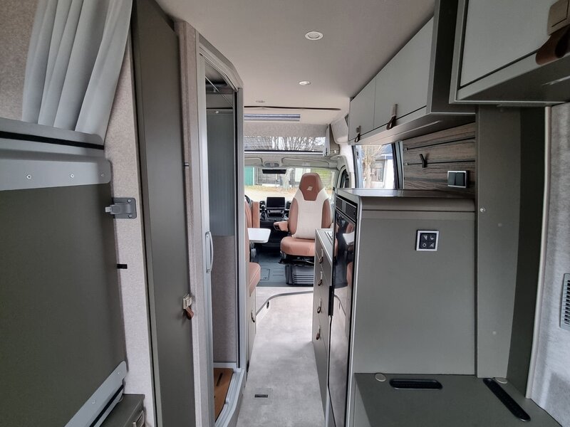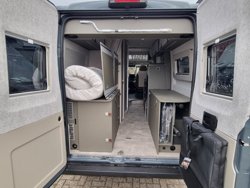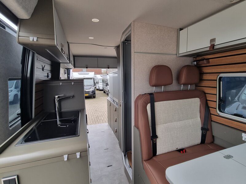 Voel de kracht van de 180 pk motor terwijl je de mooiste plekken ontdekt. De 9-traps automatische transmissie maakt het rijden een waar genot, terwijl de compacte afmetingen van slechts 599cm lang en 208cm breed je moeiteloos door smalle bergweggetjes loodsen. Geen enkele route is te uitdagend voor deze stoere buscamper!
