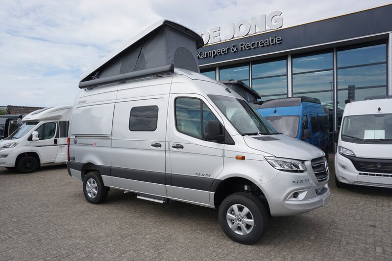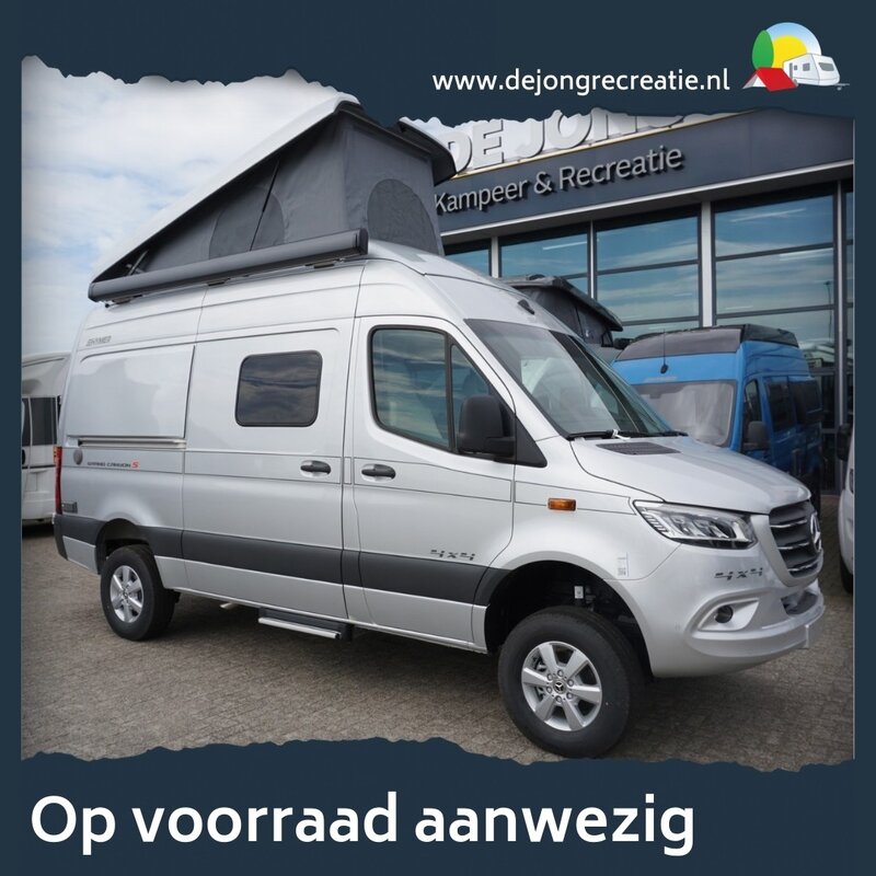 Maak je klaar voor eindeloze avonturen met de Hymer Grand Canyon S 600, een krachtige All Wheel Drive camper die perfect is voor vier personen. Geïnspireerd door de Mercedes Sprinter, biedt deze camper de ultieme combinatie van kracht en luxe. Met de indrukwekkende 190 pk motor en 9-G Tronic automatische transmissie voel je je verzekerd op elk soort terrein, ongeacht het seizoen. Of je nu in de zomer de zon opzoekt of in de winter sneeuwachtige bergen wilt verkennen, deze camper brengt je waar je maar wilt.