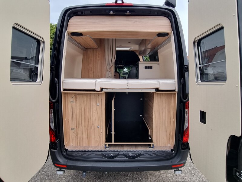 Dit geldt ook voor alles dat de camper biedt. Hoog afwerkingscomfort en oog voor detail dat koop je met deze Hymer. Naast de rijke standaard uitrusting is deze bus camper onder andere uitgerust met prachtige lederen bekleding, leder stuurwiel, de MBUX multimedia systeem en het Hymer Smart Battery System welke bestaat uit een Hybride laadsysteem met 95 Ah accu en 135 Ah lithium accu en laadcomputer.