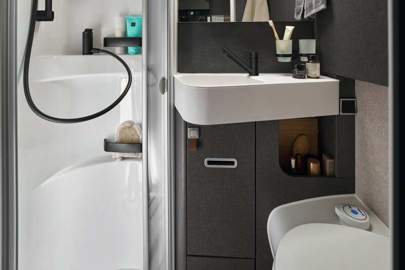Het interieur in native bamboo straalt warmte en luxe uit. Dankzij de slimme indeling en hoogwaardige afwerking geniet u van een open en rustige leefomgeving. De extra’s uit het wooncomfortpakket — zoals het hoogwaardige slaapsysteem, sfeerverlichting en praktische details — maken het verschil tijdens elke reis.