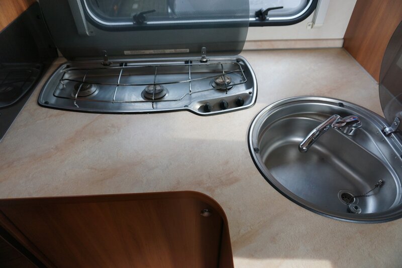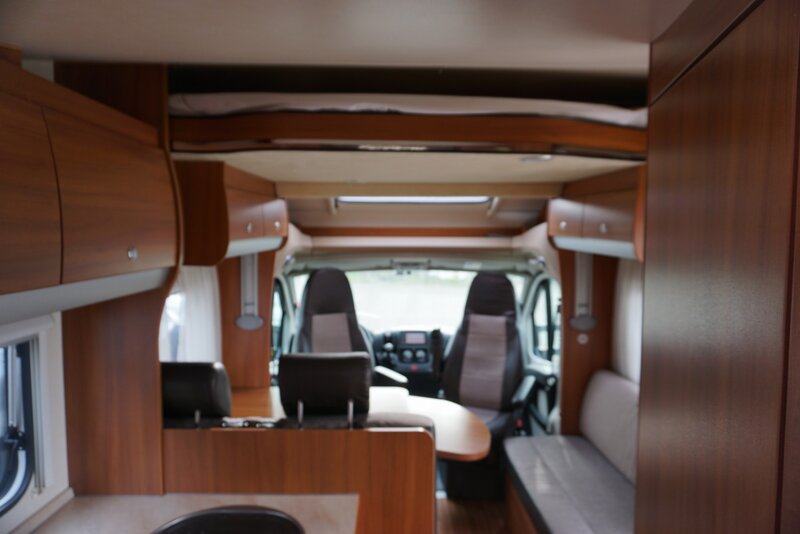interieur: Met een lengte van 7,49 meter en een leeggewicht van 3.070 kg biedt de camper plaats aan vier slaapplaatsen, waaronder enkele bedden van 90x200 cm.