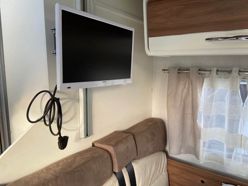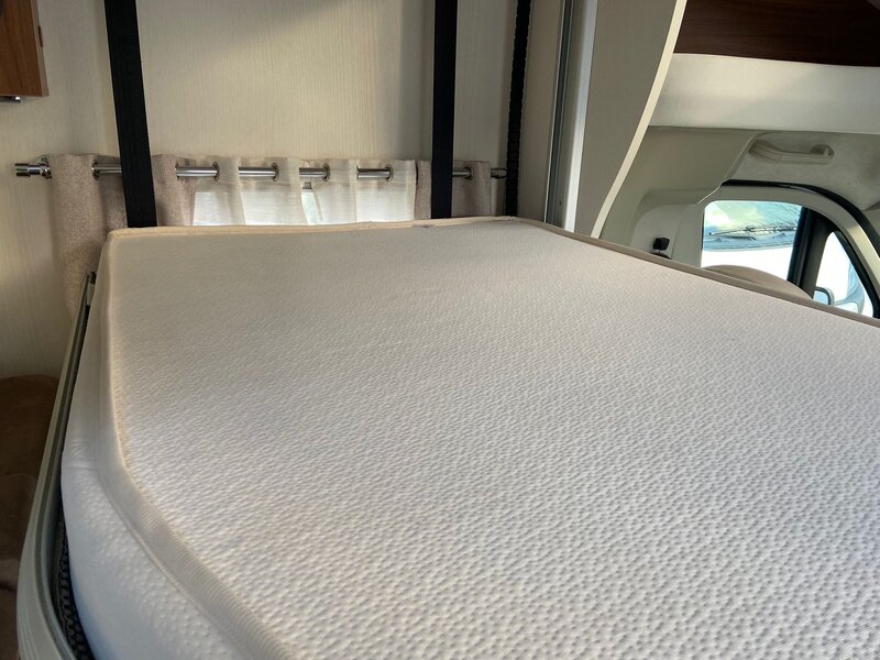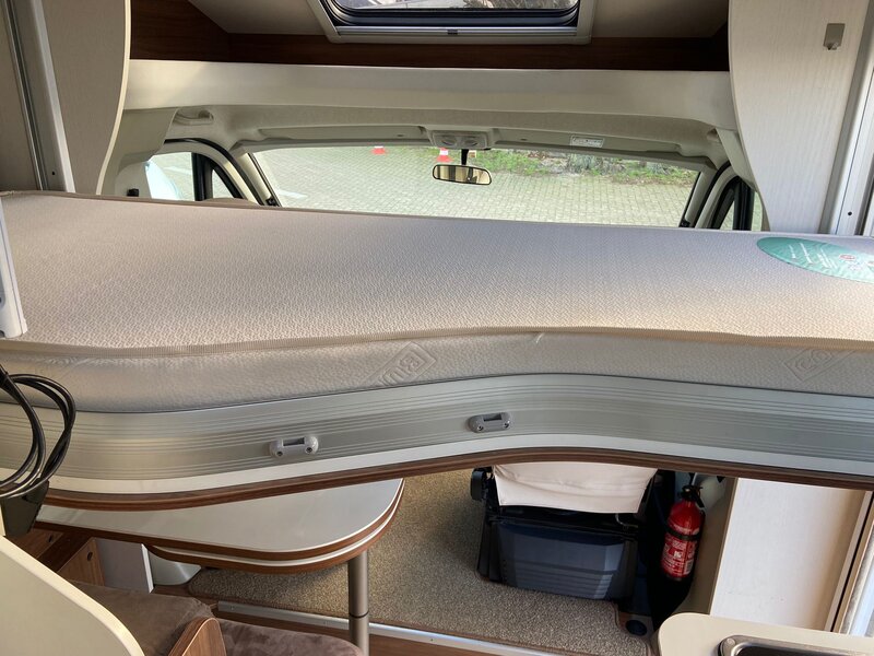 • Populaire Indeling: Voorzien van enkele bedden achterin en een elektrisch bedienbaar hefbed boven de zitgroep, ideaal voor gezinnen of groepen tot 4 personen.