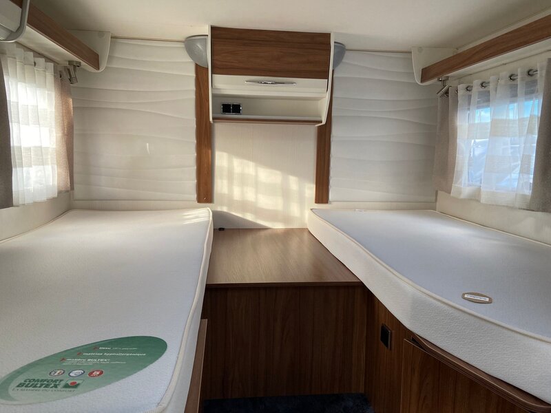 Ontdek deze prachtige, moderne half-integraal Pilote camper met enkele bedden en een hefbed boven de zitgroep. Het lichte interieur straalt zomerse gezelligheid uit, waardoor u zich direct thuis voelt.