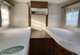 Deze Pilote P696U onderscheidt zich door de ruime indeling en het ontbreken van een vast bed, wat resulteert in extra leefruimte en een riante badkamer over de volledige breedte van de camper.