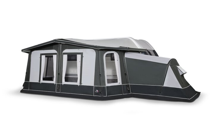 Een majestueus gevoel door veel ruimte, licht en eersteklas materialen. De Doréma Luxor Air 280 is de de eerste volledige Air voortent met een diepte van 280 cm. Speciaal ontwikkeld om een luxe en royale ruimte met veel lichtinval voor je caravan te creëren. De Luxor Air 280 is volledig opblaasbaar en heeft een modern design met dubbele slikranden.