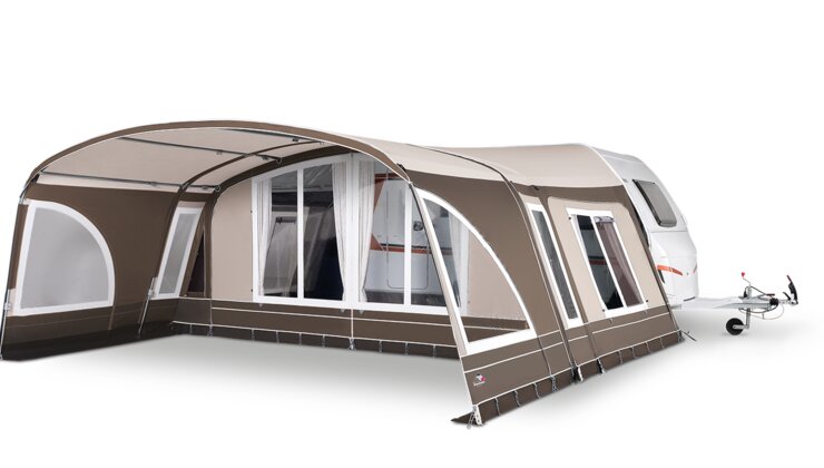 De Onyx 270 is onze tweede voortent in de edelsteen serie. Het strakke design komt goed tot zijn recht in de moderne ronde vorm van de voortent. Standaard voorzien van afneembare slikranden, waardoor het schoonmaken en afbreken kinderspel wordt. Met een diepte van 270 cm en door een extra diepe petluifel, extra hoge ramen en standaard grote ventilatievensters in de zijwanden, ervaar je extra kampeercomfort. Ook in de optionele uitbouw is de extra luxe en comfort doorgevoerd door de riante afmetingen. De optionele Onyx luifel met een diepte van 200 cm maakt de voortent helemaal af. De hierdoor gecreëerde buitenruimte van maar liefst 250 cm geeft alle beschutting voor een ontspannen vakantie.