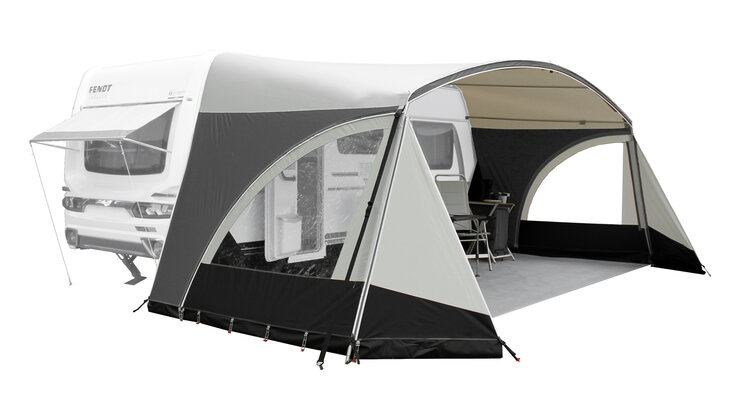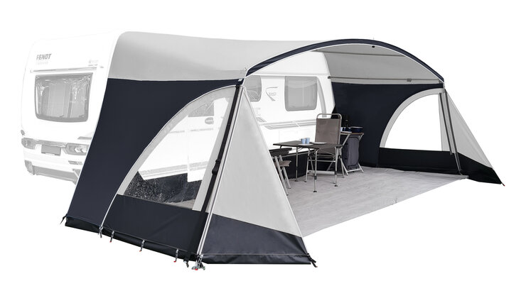Een paradepaard onder de boogluifels; de Lucca 240. Met zijn modern vormgegeven design trekt hij de aandacht op iedere camping. Dankzij de 70cm gesloten zijwand biedt de boogluifel zowel extra privacy als een gesloten hoekje om bijvoorbeeld een tafel of een kastje te plaatsen.