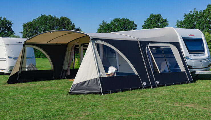 Om de juiste maat te bepalen is het belangrijk om de omloopmaat te meten van de caravan. De omloopmaat is de maat, gemeten vanaf de grond langs de caravanrail, naar de grond aan de andere zijde. Is dit tussen de 825 cm en 850 cm is maat 8 de juiste maat. Is dit tussen de 850 cm en 875 cm is maat 9 de juiste maat en zo verder. Bij een aerodynamische caravan waar de rail aan de voorkant schuin meeloopt. Dan moet er aan de voorkant vanaf 190 cm hoogte recht naar beneden gemeten worden.