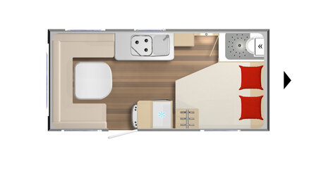 In de keuken beschikt u over een 3-pits gasstel en een hoge koelkast, zodat u moeiteloos complete maaltijden bereidt en uw boodschappen koel bewaart. De gezellige zithoek is eenvoudig om te bouwen tot een extra tweepersoonsbed. Zo combineert deze caravan sfeer, ruimte en comfort voor een ontspannen kampeervakantie.