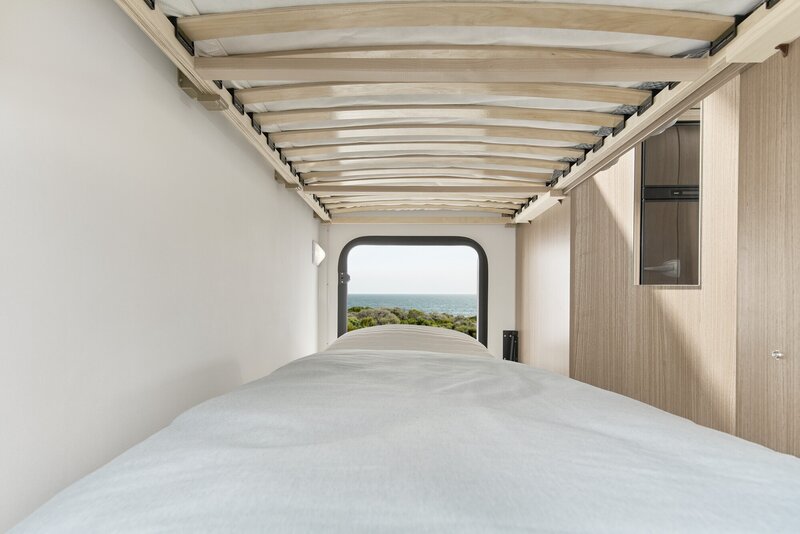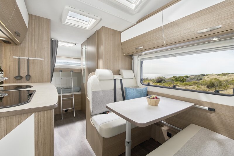 Met deze 6 persoons Carado Alkoof camper ga je heerlijk met het gehele gezin op vakantie. Voldaan van een fantastische dag haal je wat lekkers uit de extra grote koelkast en zit je met ze allen lekker na te genieten. Een ruime keuken met 3 pits kookcomfort en voorzien van afzuiger geeft je alle ruimte voor de snelle hap of de meest creatieve bereiding. Moe maar voldaan van de lange maar prachtige dag is er ruimte genoeg voor iedereen. Een tweepersoonsbed van 210 lang en 160 breed , een stapelbed van 2x 210x80 cm biedt meer dan genoeg ruimte voor volwassenen en grotere kinderen. Door de zitgroep snel en handig om te bouwen wordt een extra slaapplaats voor 2 kleinere kinderen gecreëerd van 175 x 100 cm.