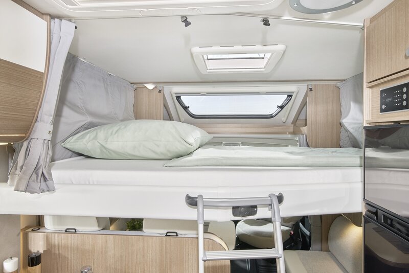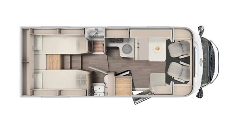 De Carado T 447 is een ruime half-integraal camper, uitgerust met een aparte douche- en toiletruimte, enkele bedden, een grote garage en een heerlijke zitgroep. Het moderne interieur straalt harmonie uit dankzij de perfecte balans tussen kleuren en materialen. Deze camper biedt alles voor een comfortabele en stijlvolle reiservaring.