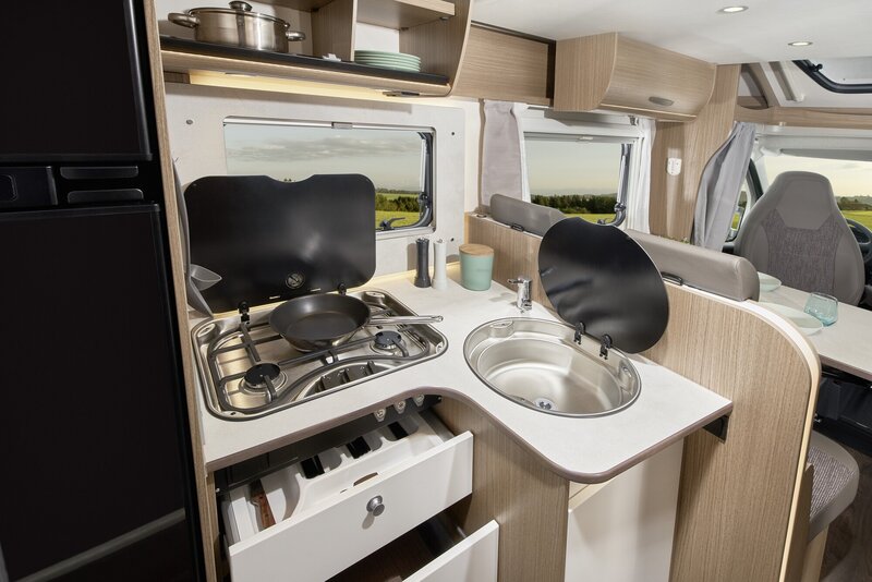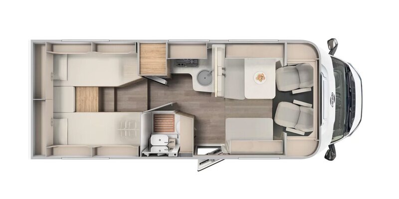 Met de Carado T448 beleeft u de ultieme reiservaring en geniet u comfortabel van de mooiste bestemmingen. Deze camper biedt alles wat u nodig heeft om te ontspannen en volop te genieten van de omgeving, elkaar en het verblijf in deze fijne camper. De compleet uitgeruste keuken, grote koelkast, comfortabele douche- en toiletruimte en de gezellige zithoek zorgen ervoor dat het u aan niets ontbreekt. Bovendien slaapt u heerlijk dankzij de comfortabele bedden.