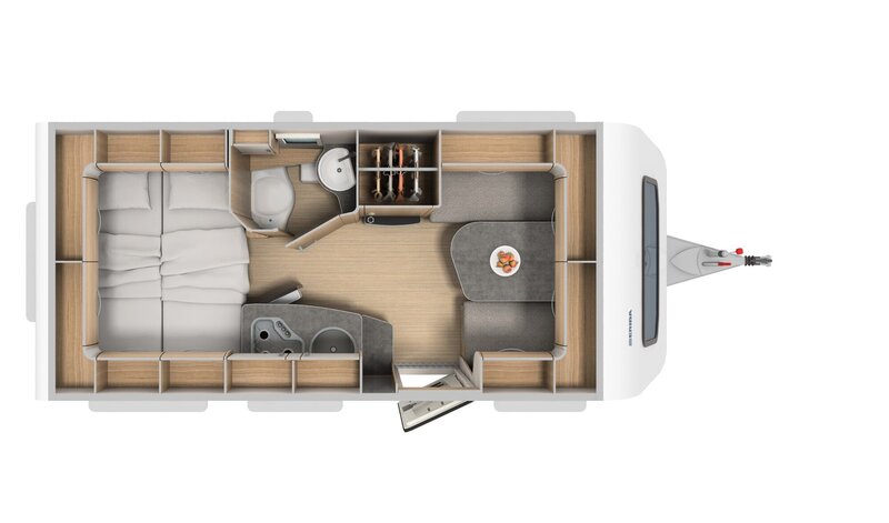 Qua slaapgelegenheid kunt u in deze ERIBA caravan ideaal slapen met drie volwassene of met twee volwassene en twee kinderen.