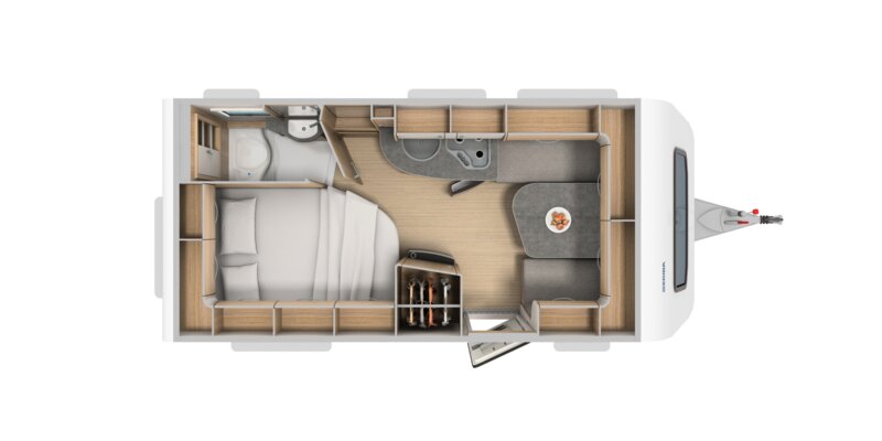In de ERIBA Eriba Nova Light/Novaline 465 kunt u door de royale hoogte niet alleen comfortabel staan, maar door het zeer geringe eigen gewicht kunt u bovendien ook allerlei extra bagage inpakken en dus meenemen wat u maar wilt. Er is veel ruimte voor u en uw medepassagiers in de gezellige zitgroepen, die niets onderdoen aan de comfortabele ligmogelijkheden. Ga dus heerlijk ontspannen (dag)dromen, zowel met de ogen open als gesloten.