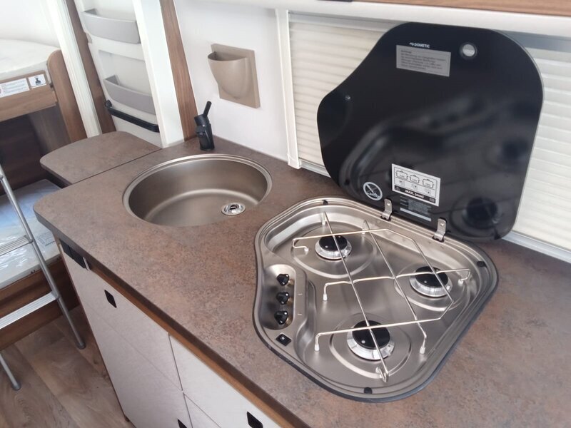 Deze ERIBA Touring 560 is de ideale gezinscaravan voor avontuurlijke kampeerders! Met een vast stapelbed, een goed uitgeruste keuken, een handige kledingkast, een toiletruimte en een fijne zithoek die omgebouwd kan worden tot een 2-persoonsbed, biedt deze caravan alles wat je nodig hebt voor een comfortabele reis. Dankzij de gestroomlijnde vorm en het praktische hefdak is de Touring compact en makkelijk te manoeuvreren op de weg, waardoor het een perfecte reiscaravan is. Met ruimte voor 4 personen biedt de ERIBA Touring volop slaapcomfort voor het hele gezin, zodat jullie zorgeloos kunnen genieten van elke kampeerbestemming!
