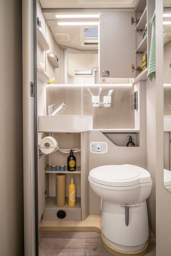 De ruime HYMER Tramp S 695 biedt ultiem comfort met een queensbed en een face-to-face zitgroep. Deze camper beschikt daarnaast over veel bergruimte in de grote garage, ideaal voor al je bagage. De hoekkeuken is ruim en praktisch ingericht, terwijl het interieur licht en ruimtelijk aanvoelt. Gebouwd op een Mercedes chassis, garandeert deze camper een comfortabele rijervaring. De 9-traps automaat maakt het rijden met de HYMER Tramp S 695 nog aangenamer en moeiteloos. Perfect voor een luxe en ontspannen reis.