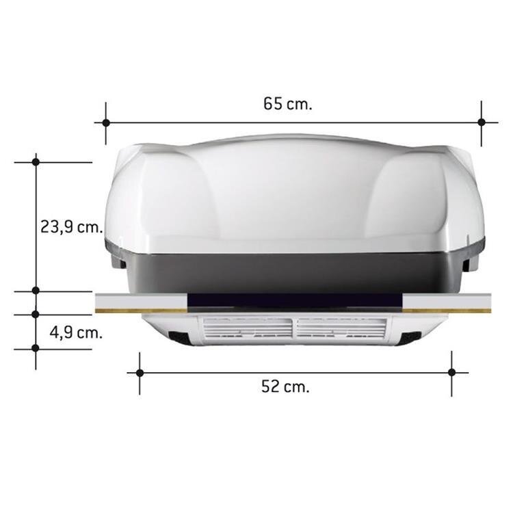 Ervaar optimaal comfort tijdens al je reizen met de Telair Dualclima 8400H. Deze krachtige en fluiterstille dakairco is speciaal ontworpen voor middelgrote tot grote campers en caravans. Dankzij de geavanceerde warmtepomptechnologie verwarmt het systeem efficiënt tot bij buitentemperaturen rond de 4°C, met een indrukwekkend laag stroomverbruik. In de automatische stand schakelt de airco zelfstandig tussen koelen en verwarmen, terwijl hij ook de ventilatorsnelheid aanpast voor een constant aangename temperatuur. De ijsbeveiliging voorkomt bevriezing van het systeem, en de uitneembare binnenfilters zijn eenvoudig te reinigen. De meegeleverde afstandsbediening met timer en verlichtingsbediening maakt het instellen van je ideale binnenklimaat nog eenvoudiger. Met een stille werking binnen én buiten en een stevige pasvorm voor dakdiktes van 30 tot 70 mm, is de Dualclima 8400H de ideale combinatie van kracht, comfort en gebruiksgemak.