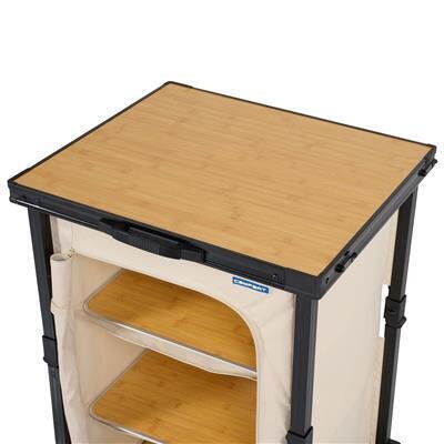 Ga georganiseerd op pad met de Lyon Campingkast van Campart. Deze kast is de ideale oplossing voor wie compacte, stevige en praktische opbergruimte zoekt tijdens het kamperen. Dankzij het slimme vouwsysteem is deze kast in een handomdraai op te zetten en weer op te bergen. De drie ruime vakken bieden volop plaats voor je kampeeruitrusting, terwijl het duurzame 600D polyester en de verstelbare poten zorgen voor stabiliteit, zelfs bij wisselende ondergronden of onstuimig weer. Met de ventilatieopeningen van gaas, welke zich aan de achterkant van de kast bevinden, houdt je al je spullen fris.