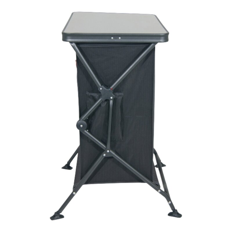 Kook met gemak en stabiliteit dankzij de Crespo AP-106 Kookkast. Deze robuuste kookkast is uitgerust met twee praktische legplanken en een uniek uitklapsysteem, waardoor hij in enkele seconden gebruiksklaar is. Het hittebestendige en watervaste melamine tafelblad biedt een veilig werkoppervlak, terwijl het zwarte aluminium frame garant staat voor duurzaamheid. Dankzij de verstelbare poten met stabilisatoren staat de kast stabiel op elke ondergrond. Na gebruik klap je de kookkast eenvoudig plat op, ideaal voor compacte opslag en vervoer.